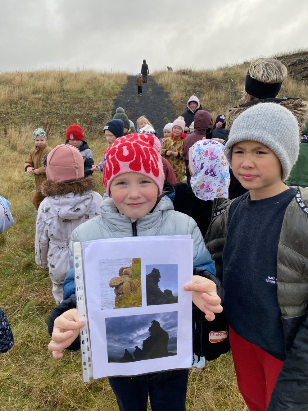 Nemendur í 2. bekk voru að vinna með bókina Gilitrutt og unnu fjölbreytt verkefni með bókinni. Til dæmis komu nemendur fram fyrir framan bekkinn og sögðu hvað þeim fannst um söguna, unnu verkefni með persónurnar í byrjendalæsi, fóru í útikennslu og löbbuðu í fjöruna og í gryfjuna þar sem nemendur fundur Álfastein, ýmsar verur og tröllskessur í klettunum. Smellið hér til að sjá fleiri skemmtilegar myndir af nemendum.